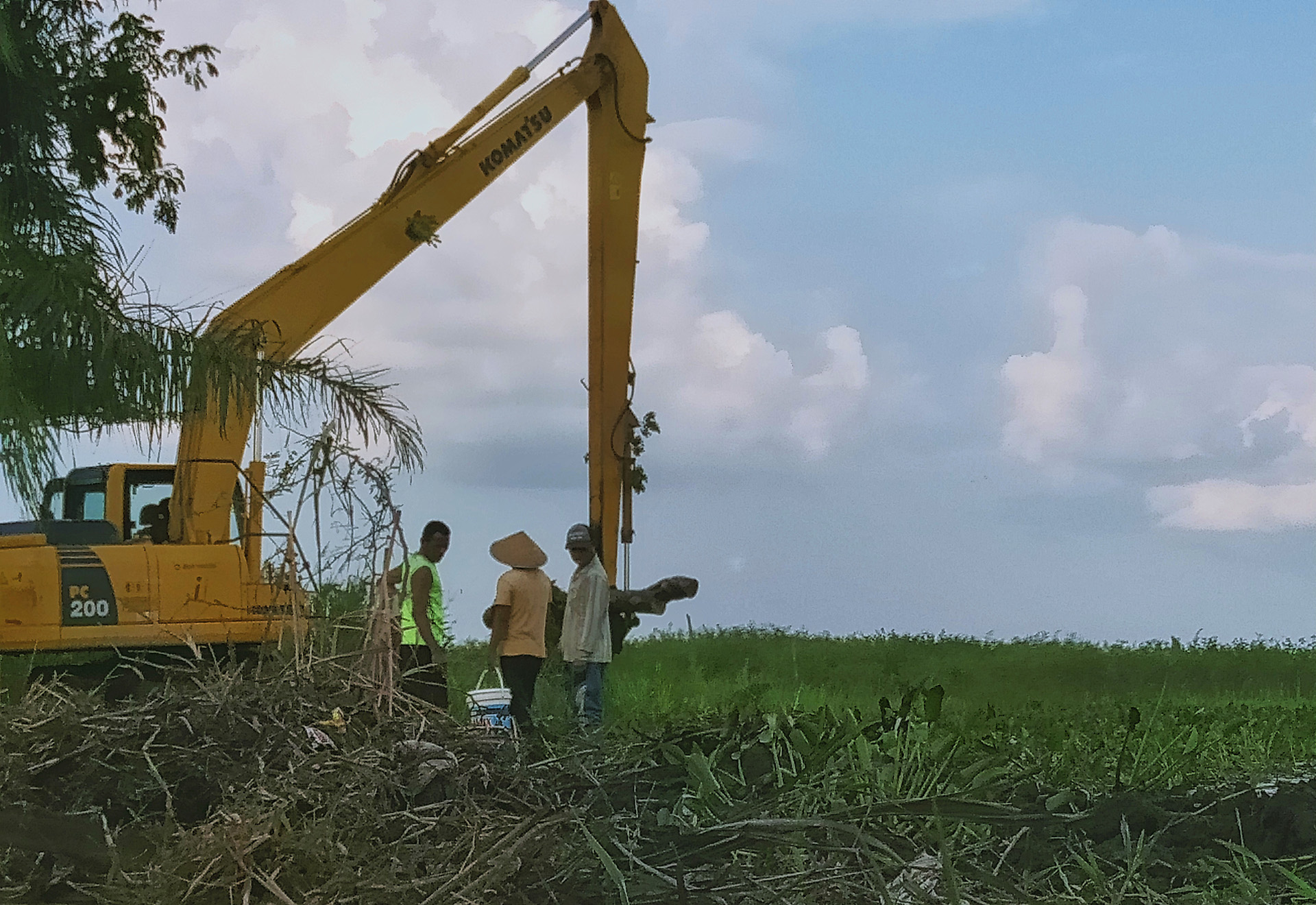 Saat alat berat mengeruk tumpukan eceng gondok, sejumlah warga turut datang dan mendekat hingga jarak aman. Mereka menenteng ember yang akan jadi alat sederhana untuk mencari ikan yang terbawa dari sisa pembersihan dari kanal itu. Ikan-ikan di kanal itu adalah ikan Gabus (Channa striata), ikan khas yang hidup di air rawa gambut.