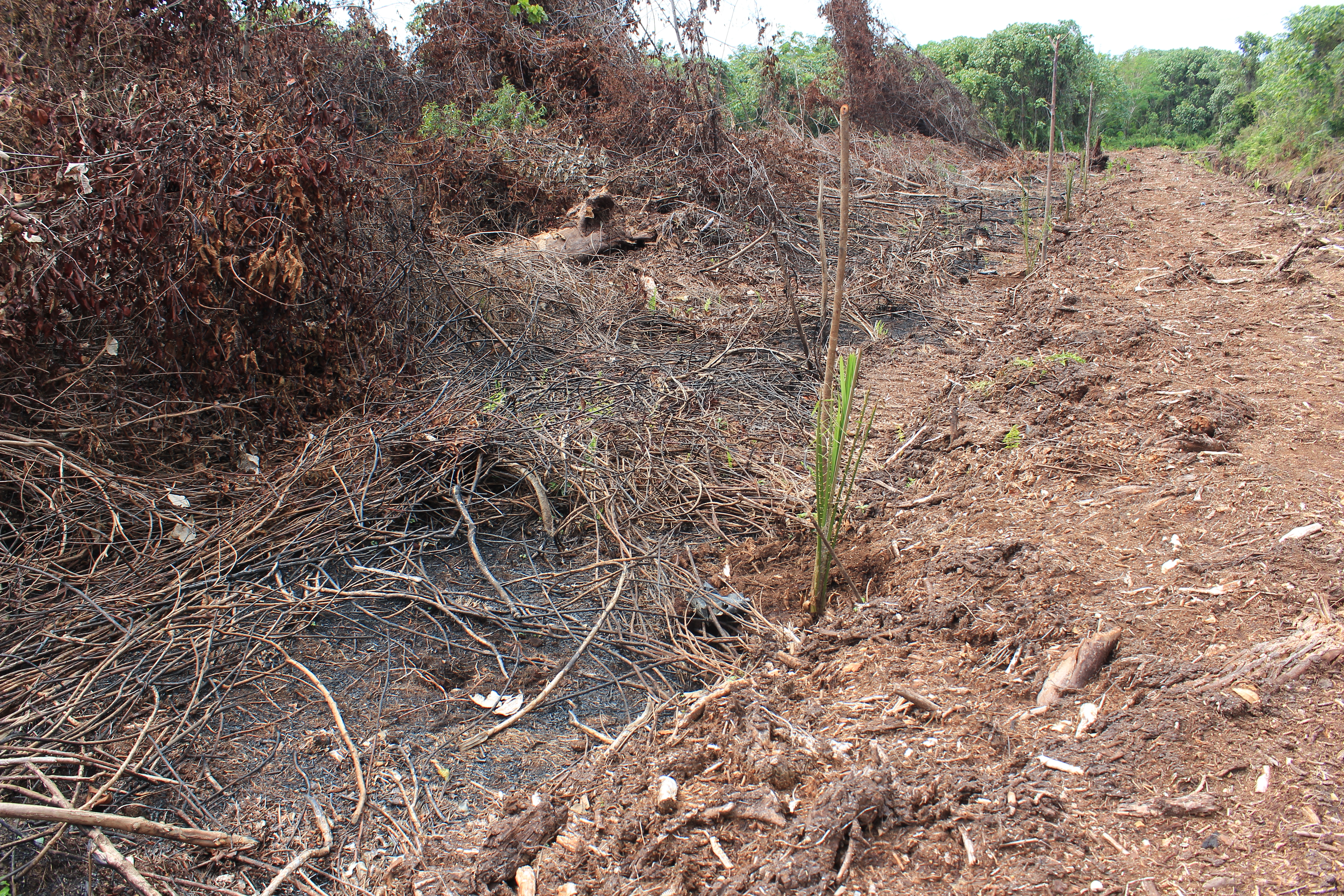 Di sepanjang sisi sekat bakar, tim menemukan sejumlah tanaman kelapa sawit yang nampaknya baru ditanam. Tim juga menemukan tumpukan bibit kelapa sawit siap tanam di sekitar lokasi. Tanaman kelapa sawit baru ini terlihat di sepanjang dan sekitar titik berwarna hijau (lihat gambar pertama).