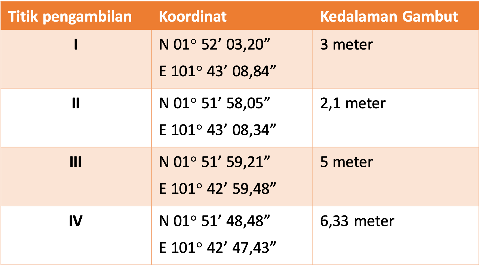 Tim melakukan pengukuran kedalaman gambut di 4 titik di sekitar lokasi kebakaran. Dari sampel 4 titik tersebut, gambut di wilayah ini memiliki kedalaman antara 2 hingga 6 meter.
